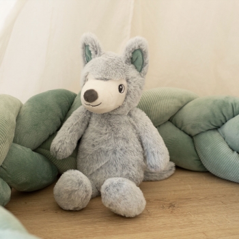 Bied je baby een troostrijke en speelse metgezel met deze muzikale wolvenknuffel. Met een hoogte van 25 cm in zittende positie is hij ideaal om de babykamer aan te vullen en is hij gemakkelijk hanteerbaar door kleine handjes. Ontworpen om te kalmeren en te vermaken, wordt hij op een speelse manier geactiveerd: trek gewoon aan de staart van de wolf om een zachte melodie te laten klinken die kalmeert en geruststelt.